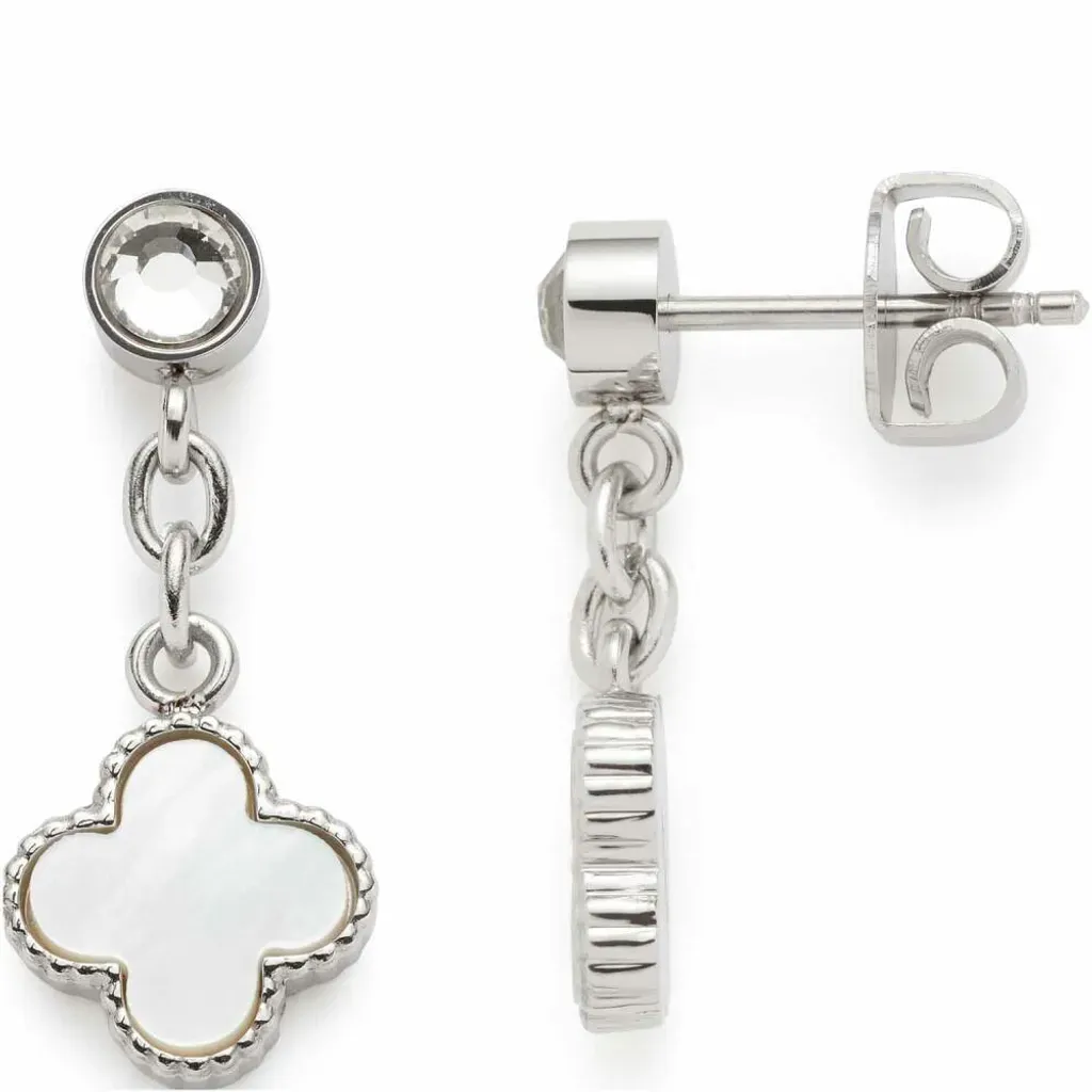 Leonardo Ohrstecker Minelli – Glücksbringer mit Perlmutt und Glaskristallen Die stilvollen Ohrstecker Minelli von Leonardo sind eine Hommage an das Glück. Zwei stilisierte Kleeblatt-Anhänger mit ziseliertem Rand und facettierten Glaskristallen sorgen für eine elegante Optik. Der weiße Perlmutt verleiht dem Schmuckstück eine besondere Ausstrahlung. Material: Edelstahl Steine: Weißer Perlmutt, Glaskristalle Farbe: Silber Größe: Höhe 24 mm, Länge 10 mm Gewicht: 14 g Besonderheiten: Zwei stilisierte Kleeblätter als Anhänger, ziselierter Rand und funkelnde Glaskristalle – ein stilvoller Glücksbringer für jeden Tag. Setzen Sie funkelnde Akzente mit den Leonardo Minelli Ohrsteckern!